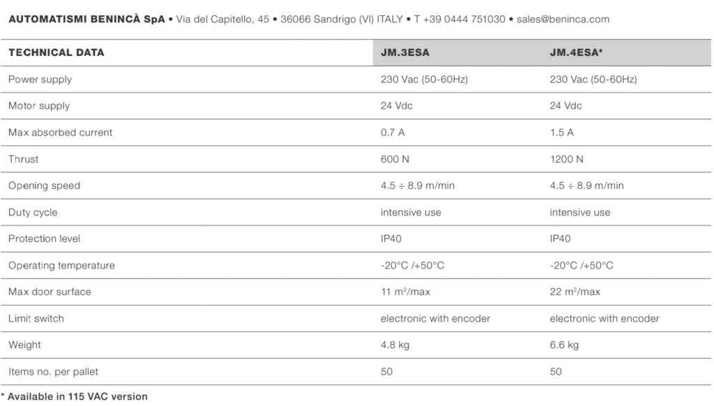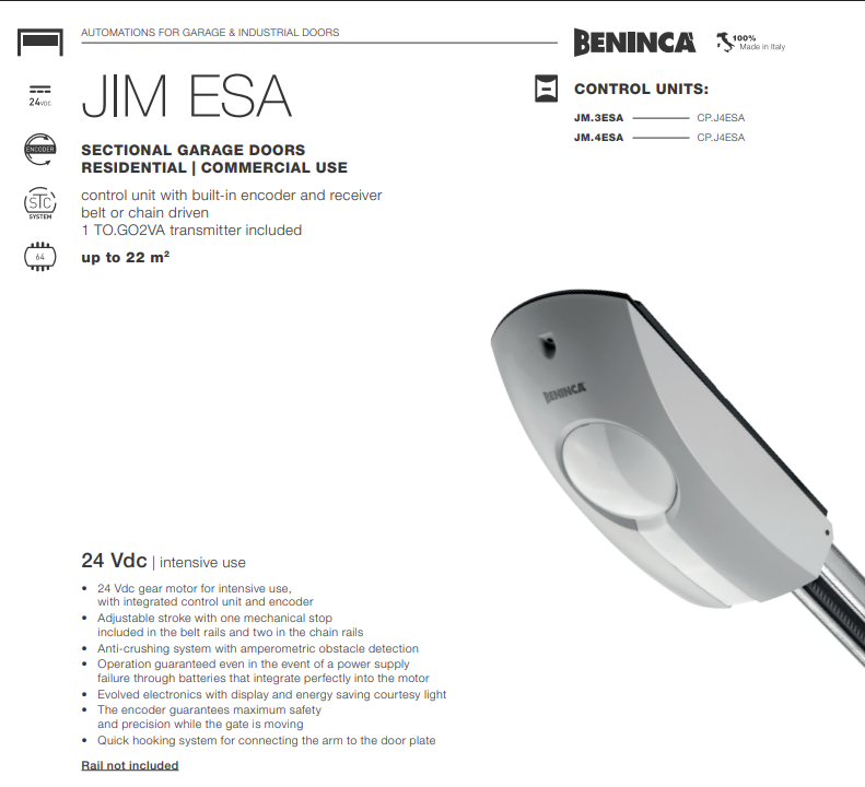 Langkah yang dapat disesuaikan dengan satu penghentian mekanis yang disertakan di rel sabuk dan dua rel di rantai. Pengoperasian terjamin meskipun terjadi kegagalan pasokan daya melalui baterai yang terintegrasi sempurna ke motor. Elektronik yang berevolusi dengan tampilan dan lampu hemat energi. Encoder menjamin keamanan dan presisi maksimum saat gerbang bergerak. Sistem pengait cepat untuk menghubungkan lengan ke pelat pintu.