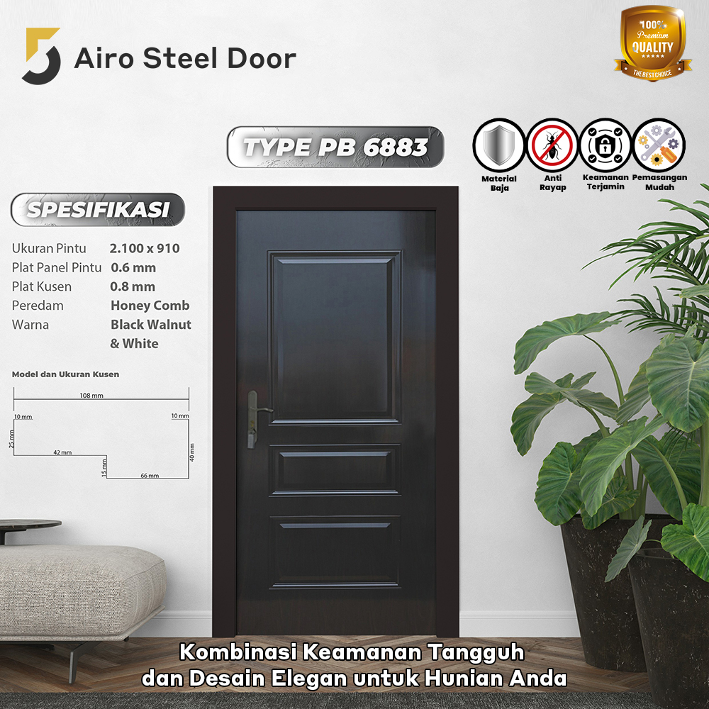 Pintu baja berkualitas tinggi dari AIRO dirancang untuk memberikan keamanan maksimal dan tampilan modern bagi hunian maupun bangunan komersial Anda. Terbuat dari material baja kokoh, tahan cuaca, dan anti karat, Steel Door AIRO cocok untuk penggunaan jangka panjang dengan perawatan minimal. Dilengkapi dengan sistem penguncian kuat dan desain minimalis elegan, menjadikannya pilihan tepat untuk gaya hidup modern yang mengutamakan keamanan dan estetika.