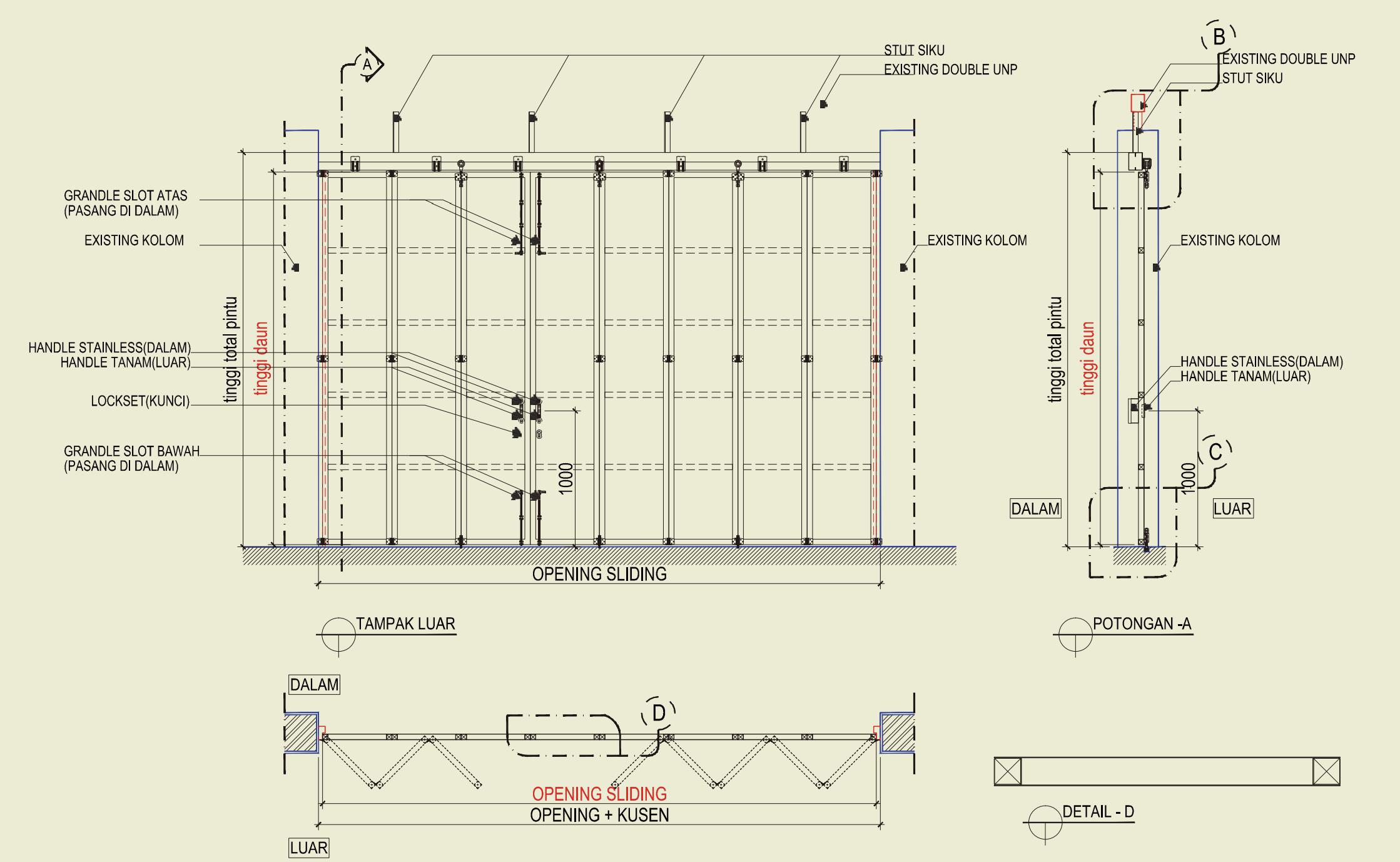 Pintu geser atau lipat dengan opening besar yang dikhususkan untuk area industrial seperti pabrik, pergudangan, garasi, dll. Mempunyai alternatif single skin ( single plate ) & double skin ( double plate ) yang dapat disesuaikan dengan kebutuhan anda.